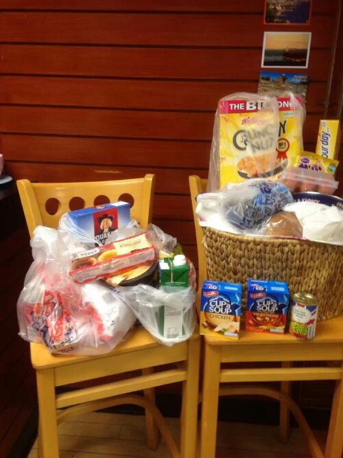 This morning Phil Young our local PCSO came in the cafe and asked for our help to gather some food for a pensioner who was going without . I announced this to the customers in the cafe and was totally overwhelmed by the kind response .