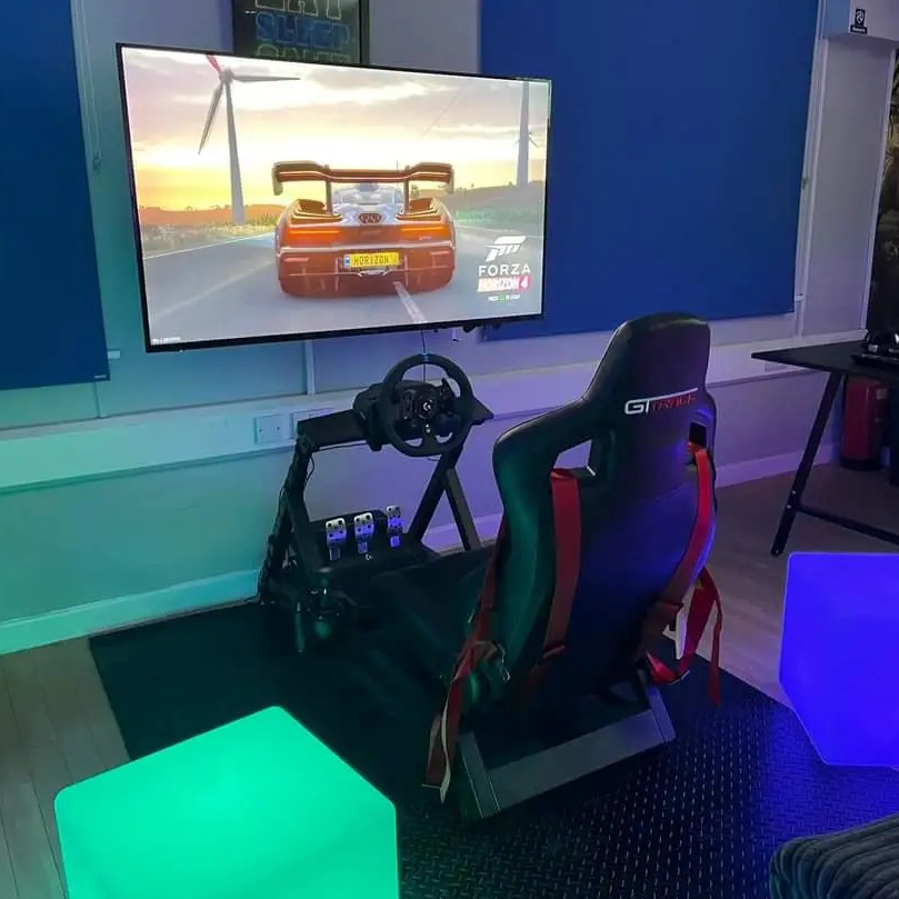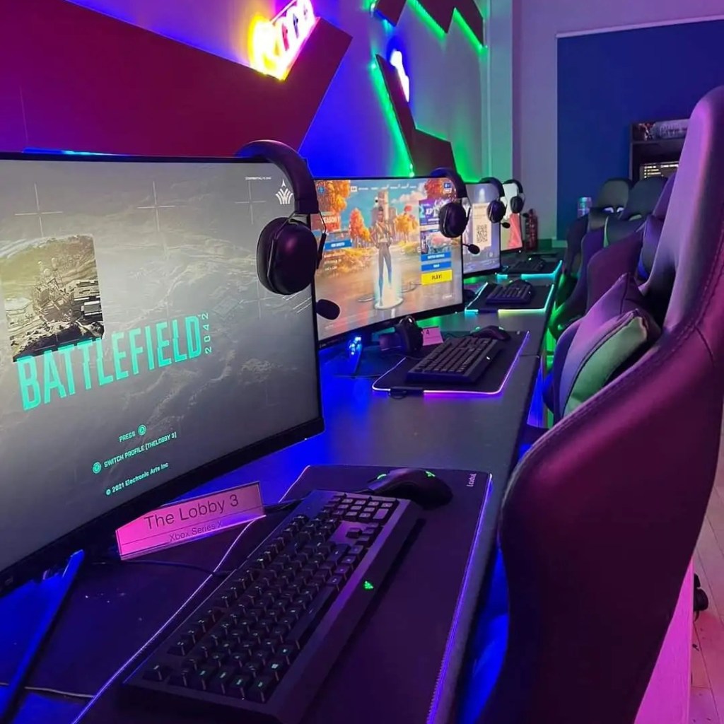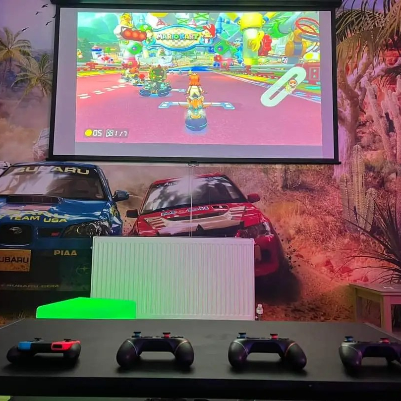 We have 7 Xbox series X with curved gaming monitors, keyboard and mouse. Nintendo Switch on the projector for up to 4 players. Racing seat simulator. Arcade machines, DJ decks and more!
